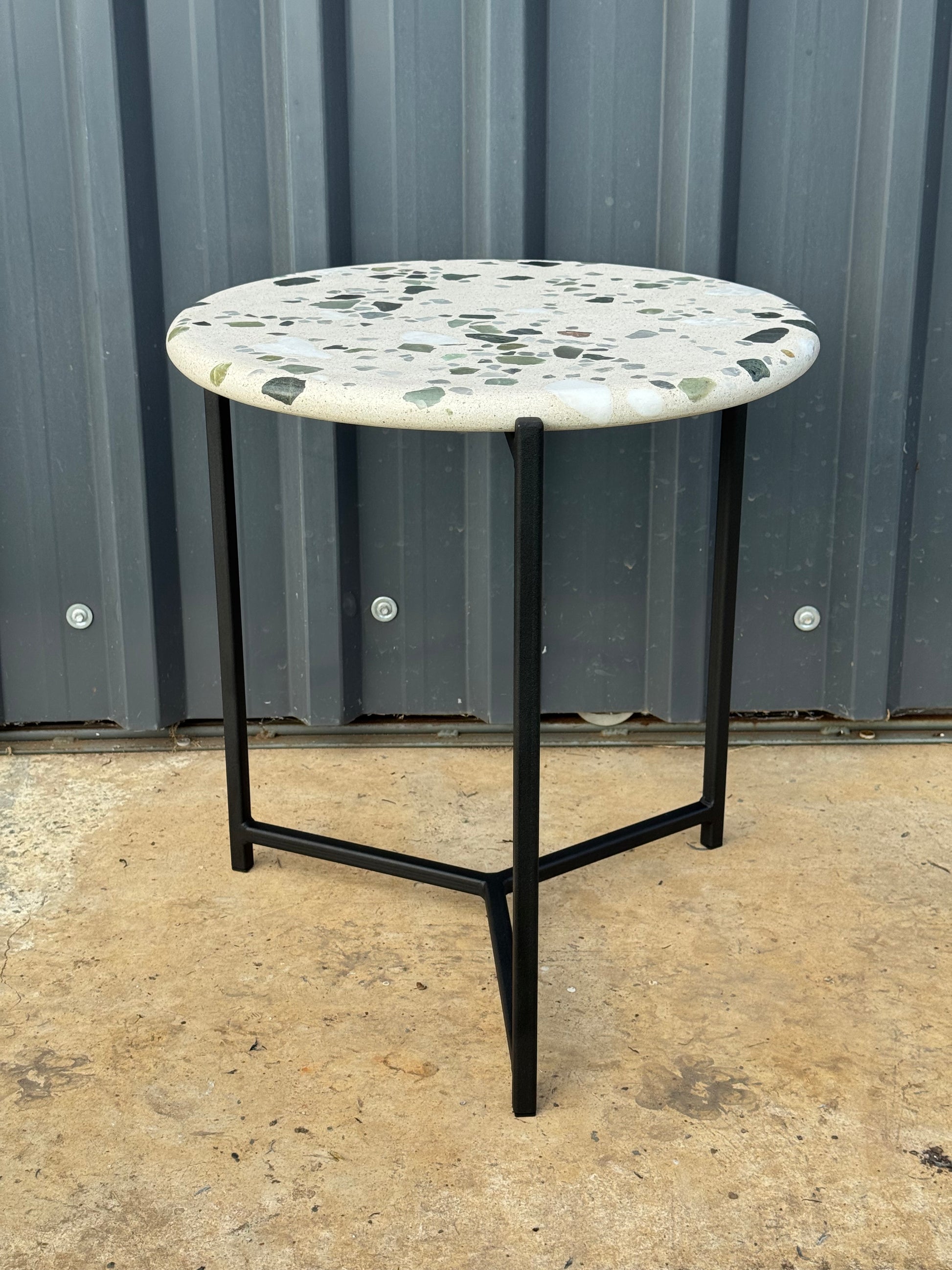 Materials: Polished Concrete surface with a mild steel base. Epoxy powdercoated in Matt black